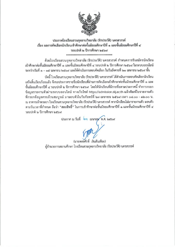 1 ตุลาคม 2567 1,503 ครั้ง Admin ค้นหาข่าวสาร ข่าวประชาสัมพันธ์ล่าสุด ประกาศโรงเรียนสวนกุหลาบวิทยาลัย (จิรประวัติ) นครสวรรค์ เร... 23 เมษายน 2569 ประกาศโรงเรียนสวนกุหลาบวิทยาลัย (จิรประวัติ) นครสวรรค์ เร... 22 เมษายน 2569 ประกาศ 📣 รับสมัครนักเรียนใหม่ 2569 รอบ 2 30 มีนาคม 2569 ดูข่าวทั้งหมด